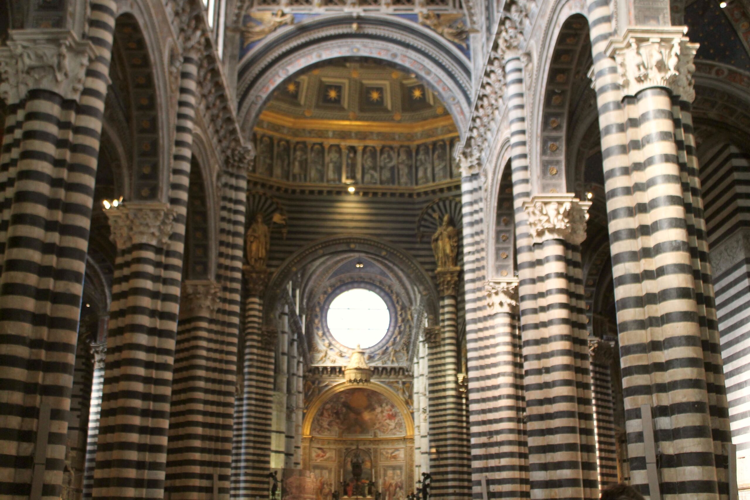 Conhecida pela sua Piazza del Campo, esta cidade medieval tem a loba que amamentou Remo e Rómulo como seu símbolo e presente por toda a cidade. O seu Duomo é um dos exemplos mais marcantes da igreja gótico-românica do país. Imponente, quase ofuscante pelo o uso extensivo do mármore branco, o Duomo fascina, mesmo do lado de fora. E ao entrar, não é uma decepção, pois a Catedral possui obras assinadas por artistas como: Donatello, Nicola Pisano e Michelangelo. Mas ainda mais fascinante achei a Biblioteca Piccolomini, também dentro da Catedral, toda ela recoberta com frescos verdadeiramente extraordinários nas paredes, mas também no teto, brilhando por causa uso abundante de ouro.