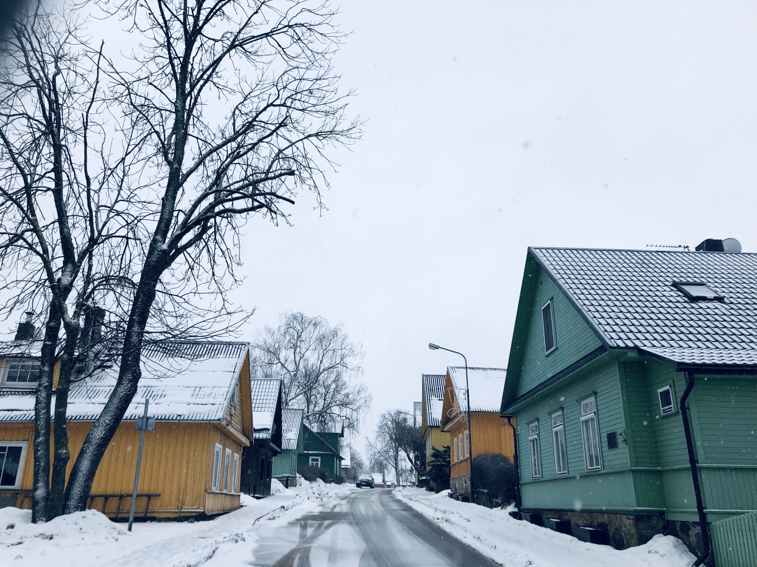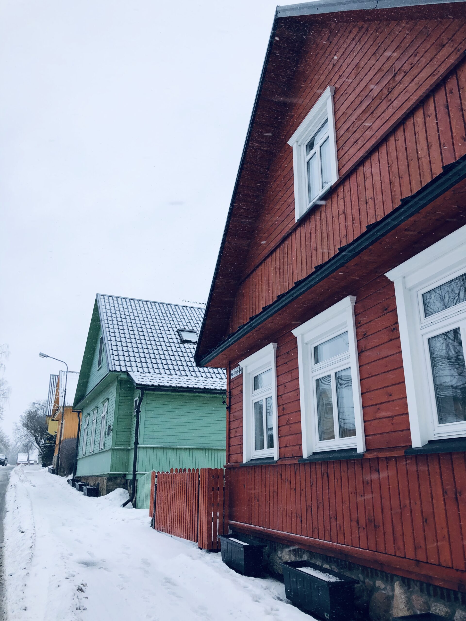 Chegar a Trakai, ainda para mais no Inverno, com tudo branco, foi uma experiência quase surrealista. Era segunda-feira, não havia quase ninguém na rua. Fomos deixados no inicio da cidade, que não deve contar com mais de meia dúzia de ruas, todas elas com casinhas de madeira coloridas. A principal, onde ficámos, desce em direcção ao castelo.